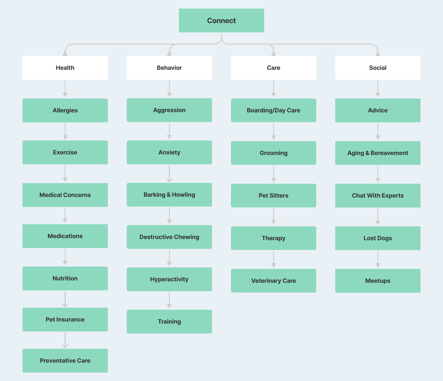 After synthesizing our research, we decided on the best direction to move forward. We created a new tab for the mobile application called "Connect” in which users communicate with other pet owners and have their content moderated by Petco’s veterinary experts.